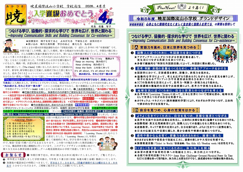 学校通信『暁』2026年4月号